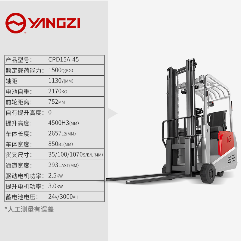 揚子三支點座駕式平衡重電動叉車CPD-A